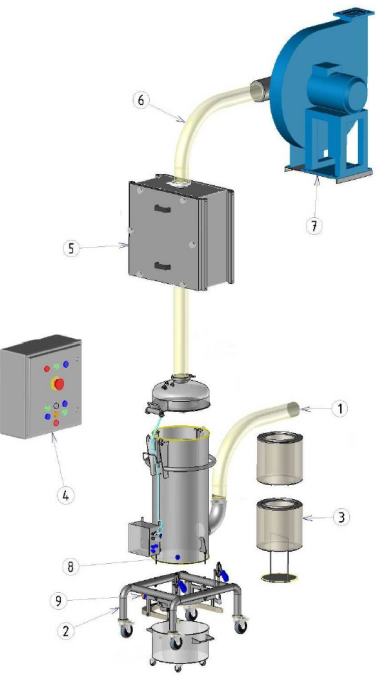 • Tubería de conexión (Ø150mm) a la turbina de aspiración