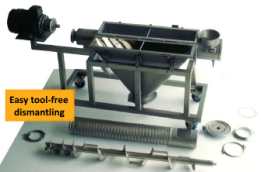 Silencioso y ahorra espacio, requiere un mantenimiento mínimo. Su desmontaje sin herramientas es muy fácil y rápido, simplificando las operaciones de limpieza al cambiar lotes o productos.